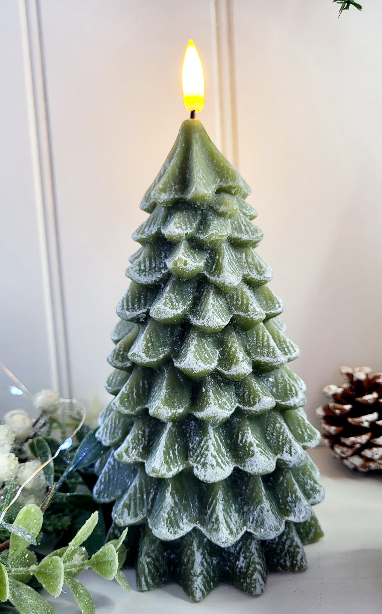 Light up your home with this LED faux fir tree candle ....made from real wax for an authentic candle feel with a snowy finish ,but powered by battery so will last year after year. Two sizes available 17cm or 14cm .