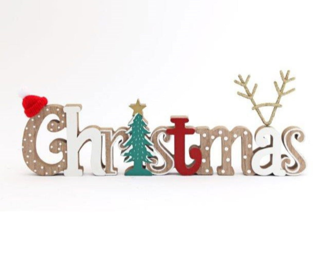 A fabulous wooden word block spelling CHRISTMAS and each letter decorated and painted in a festive theme, from a red woolly hat on the C , the I is a Christmas tree and the A has gold sparkly antlers, would look lovely on a shelf for Christmas!