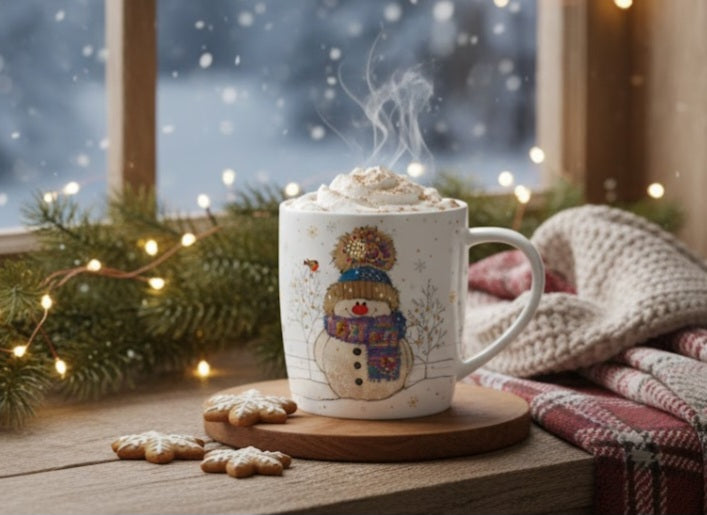 A lovely colourful fine china mug, decorated with a festive fun snowman figure with gold highlights making him really sparkle , can you spot the cute robin? Why not add a coaster to match with the same gorgeous design. Both come gift boxed.