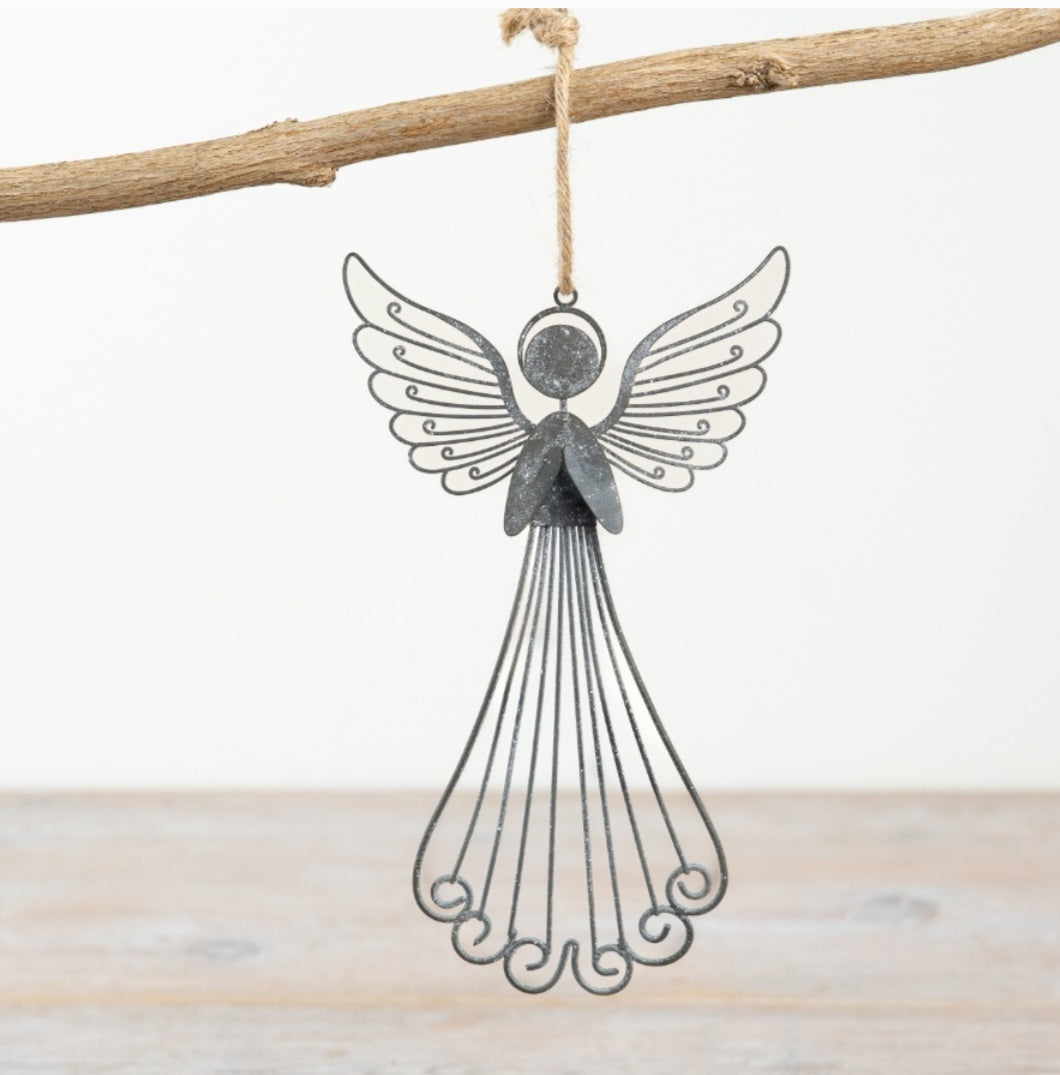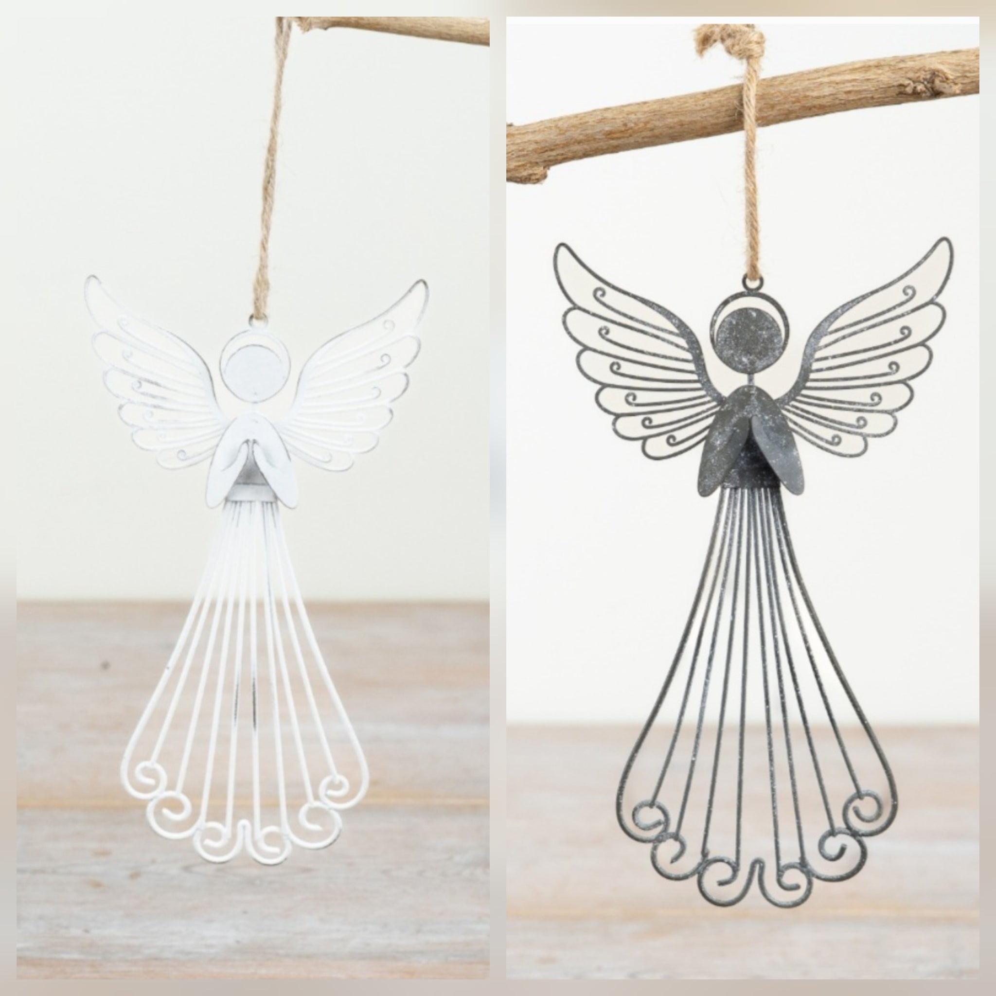 Charming wire angel hangers - white washed or grey - an elegant addition to your festive decor. Made from high quality wire and washed in white or grey .