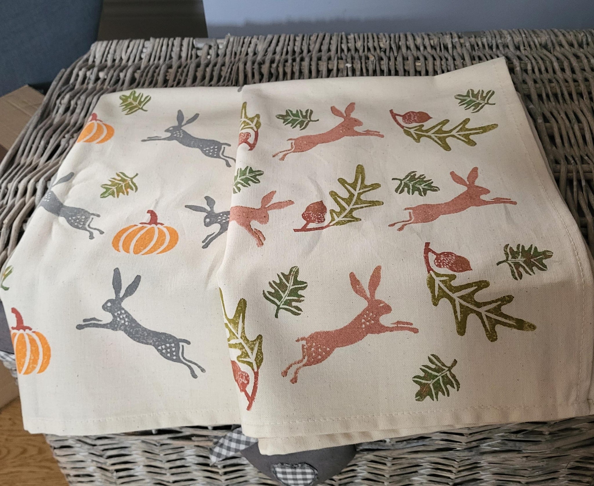Bring the Autumn vibes into your kitchen with these gorgeous hand printed tea towels.