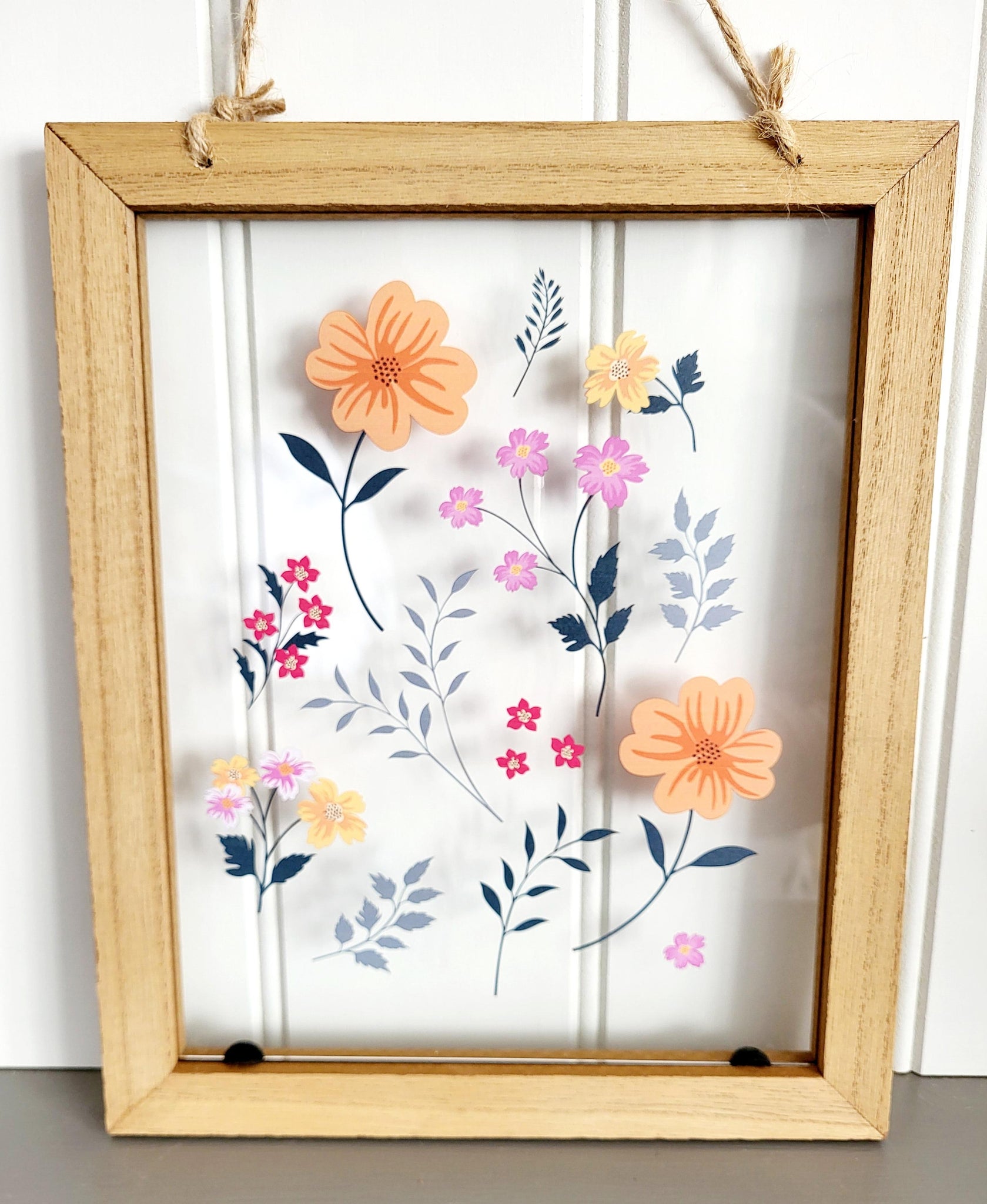 A pretty glass panel printed with a bright botanical design in pinks, orange, yellow and green colours and finished in a natural wood frame complete with jute hanging twine.So pretty and bright, a gorgeous and unique gift for anyone.