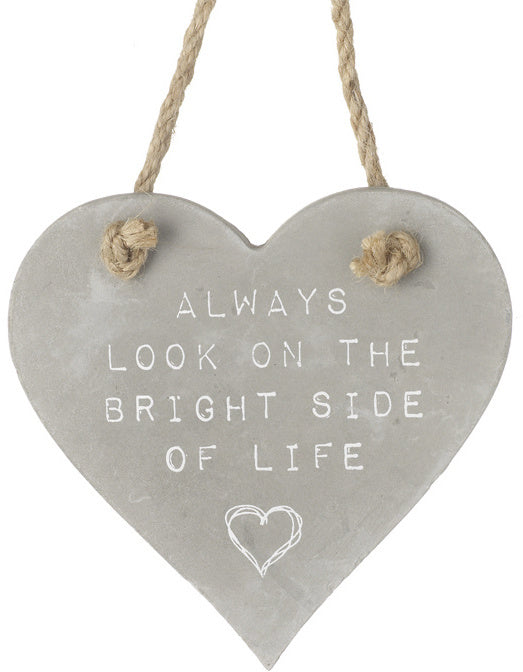 Grey concrete hanging heart plaque with popular "Always look on the bright side of life" quote.