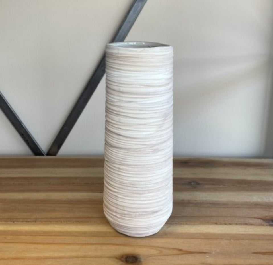 This simple rustic natural coloured stoneware vase would look great in any decor. Its neutral colour with a textured surface makes it so chic.