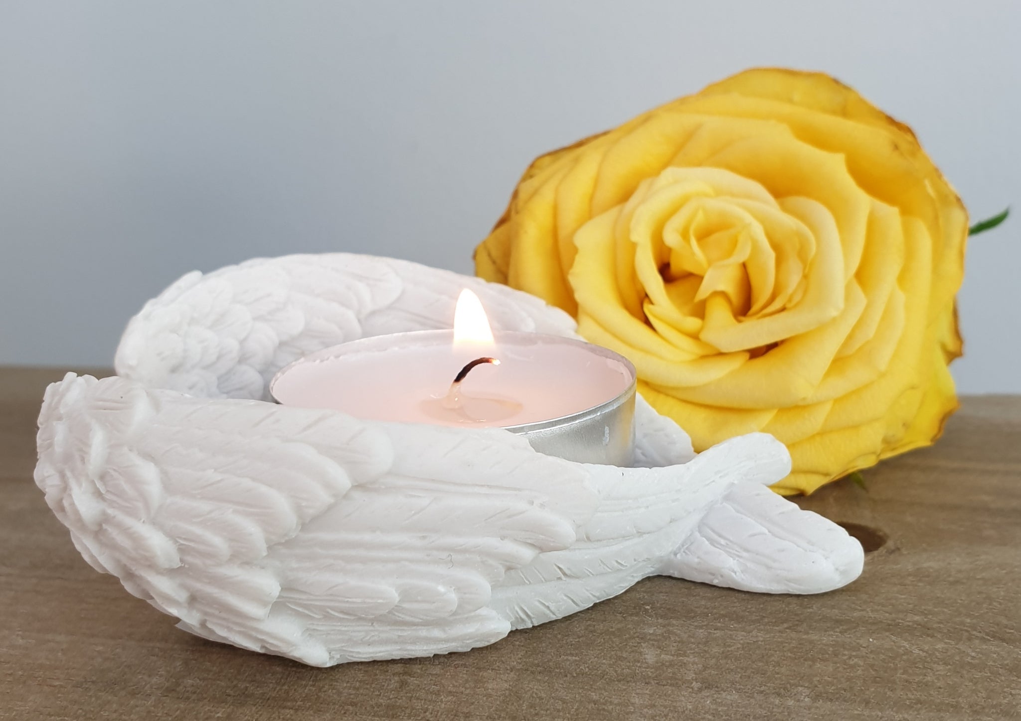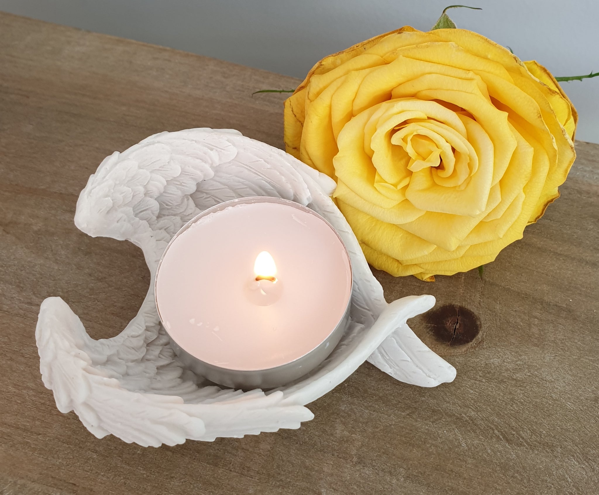A beautifully simple angel wing shaped trinket dish in a soft white tone .Perfect for displaying in your home and using as a trinket dish or as a delicate tea light holder.