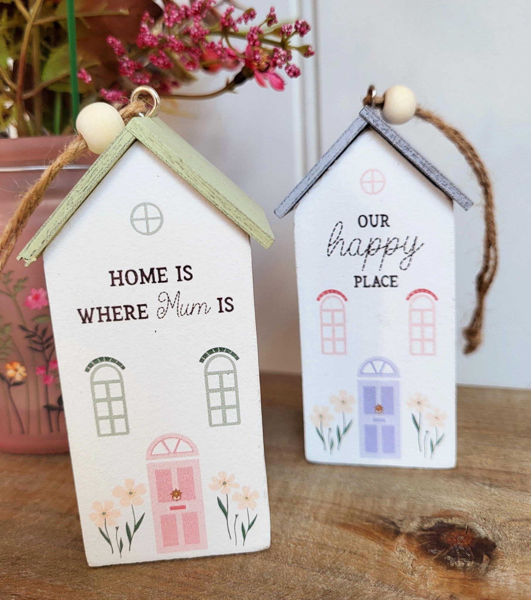 These adorable wooden painted floral patterned houses would make a lovely gift for Mothers day or moving in pressie. Two designs available , pastel blue and pastel green , 'Home is Where Mum is' and 'Our Happy Place'.