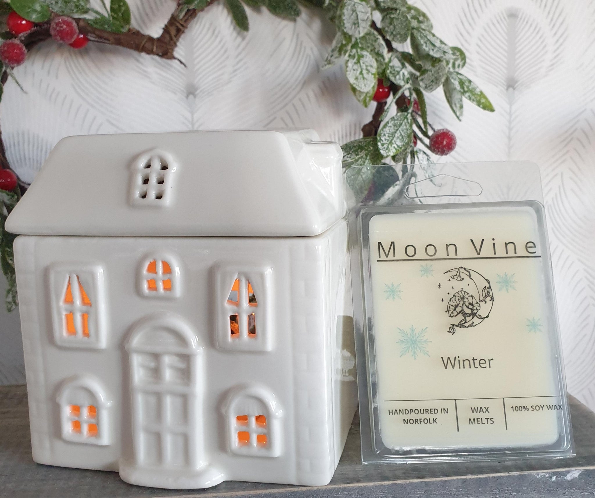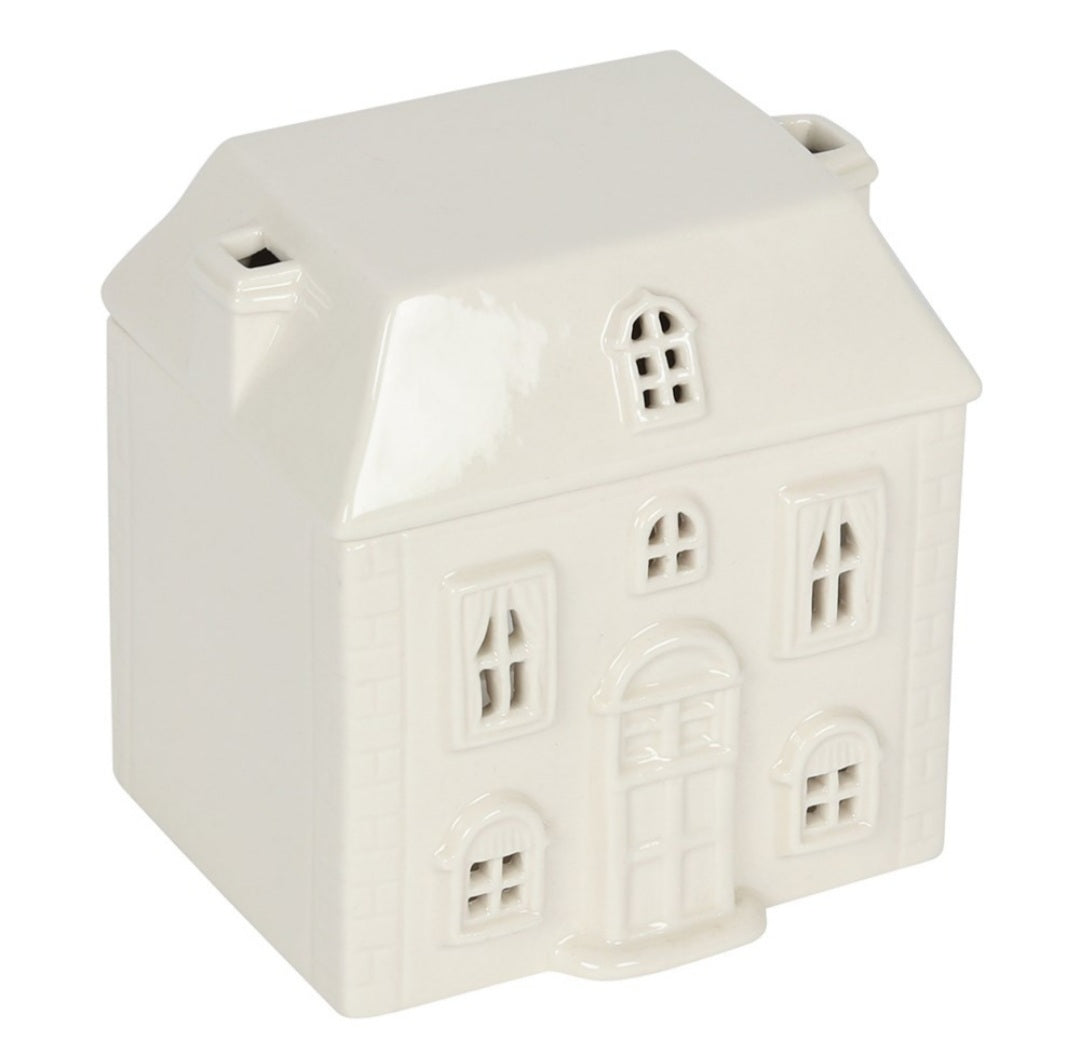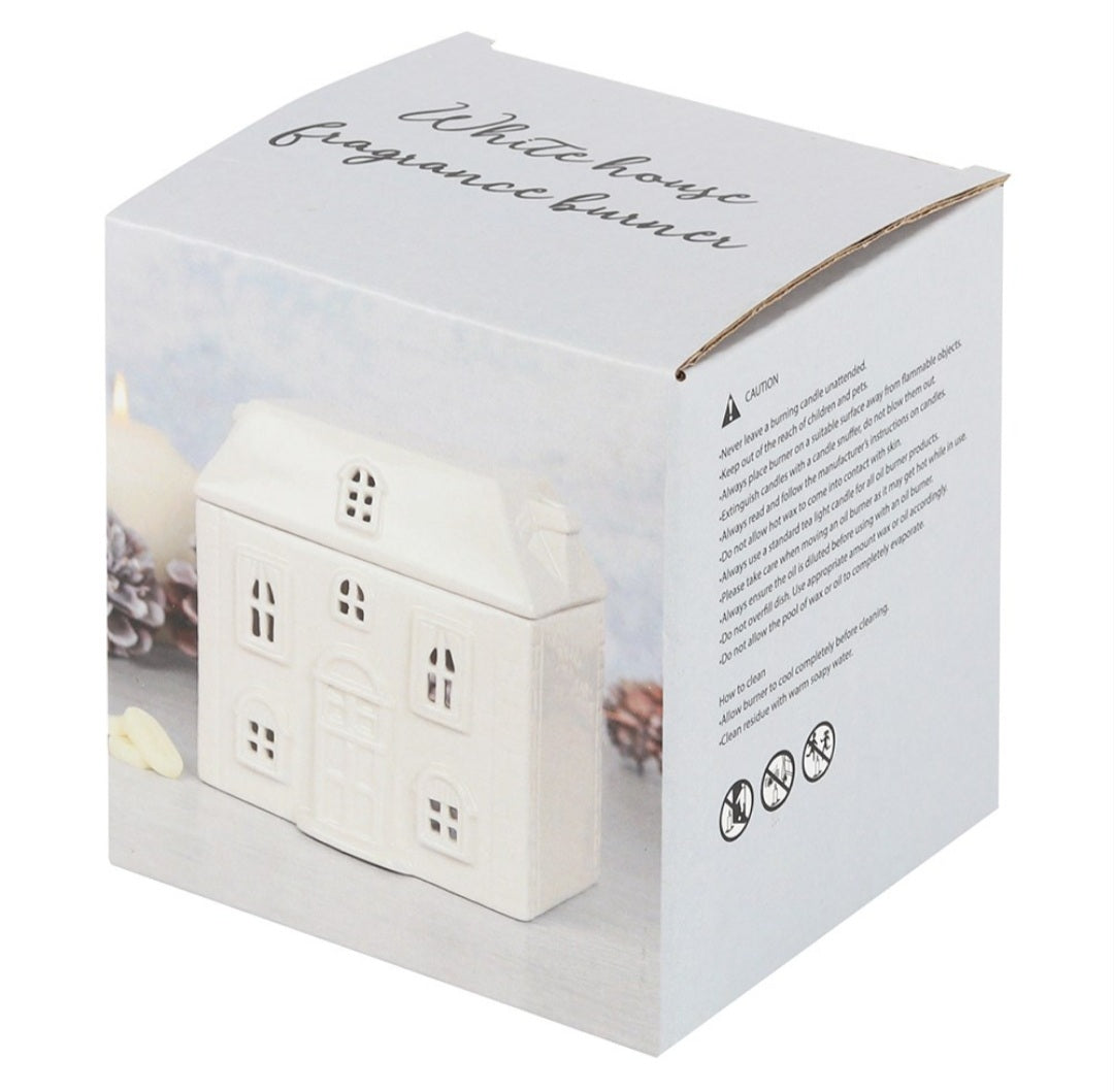 An adorable shiny white ceramic fragrance burner , oil or wax melts can be used . Simply place a lit tea light inside the bottom of the house, then remove the roof section to reveal the melting pot and place the wax melt inside, wait for the scent to fill the air . Comes with a gift box. Fabulous hand poured wax melts available separately.